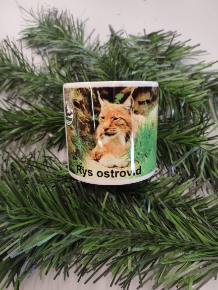 Keramický hrneček na espresso s potiskem rysa ostrovida.