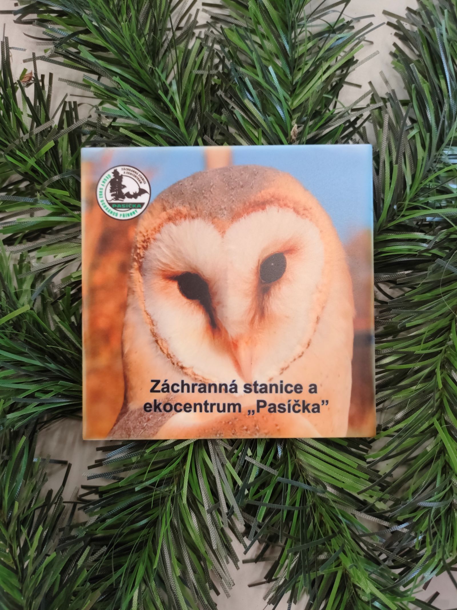 Keramická dlaždice bílá matná 11x11 cm, tloušťka 5mm, obrázek Sova pálená